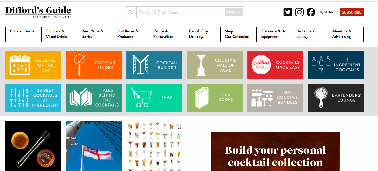Tu peux (non, tu dois !) éplucher en long et en large LA référence : Le Difford’s Guide. À la fois bouquin (16 ème édition en date…) et site web, c'est une source infinie de connaissances et compétences sur notre métier. Et la référence selon nous. Par contre c’est en anglais. Sorry.